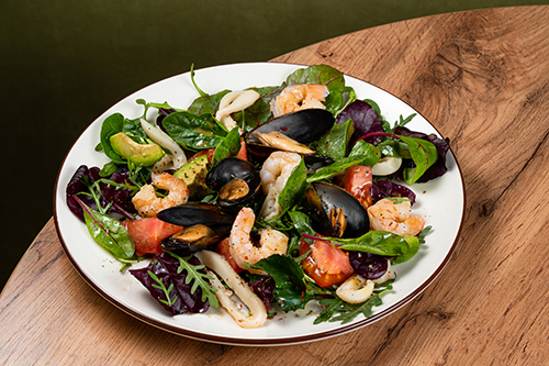 Большой салат с россыпью морепродуктов - щедрый, как южное гостеприимство.